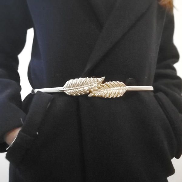 Cinturón De Decoración De Vestido De Hojas Mentales Únicas Para Mujer Cinturón De Jeans Sólido Ajustable Elástico