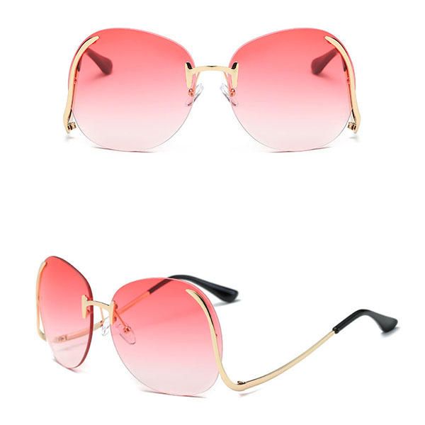 Gafas De Sol Anti-uv De Pierna Curva Sin Marco Para Mujer Gafas De Lente De Color Degradado