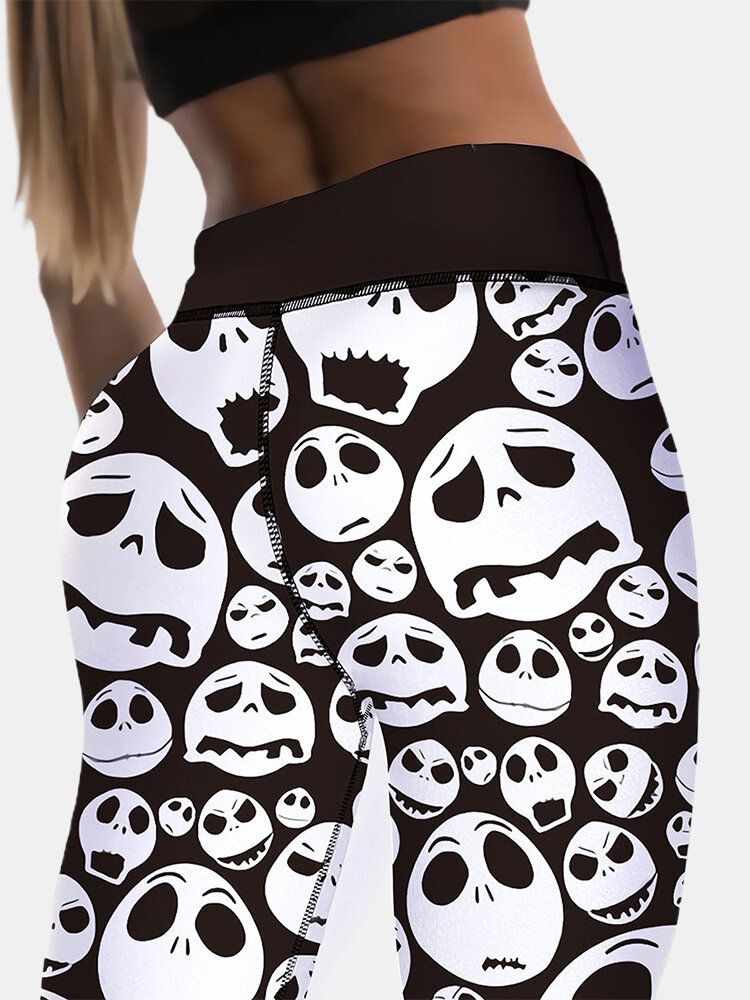 Pantalones Delgados De Cintura Alta Con Estampado De Esqueleto De Estilo De Halloween Para Mujer