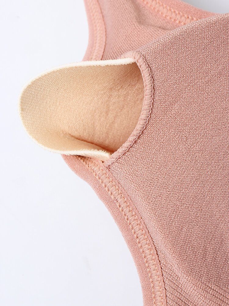 Sujetador Deportivo De Yoga Con Cierre Trasero Inalámbrico Sin Costuras De Color Sólido Para Mujer